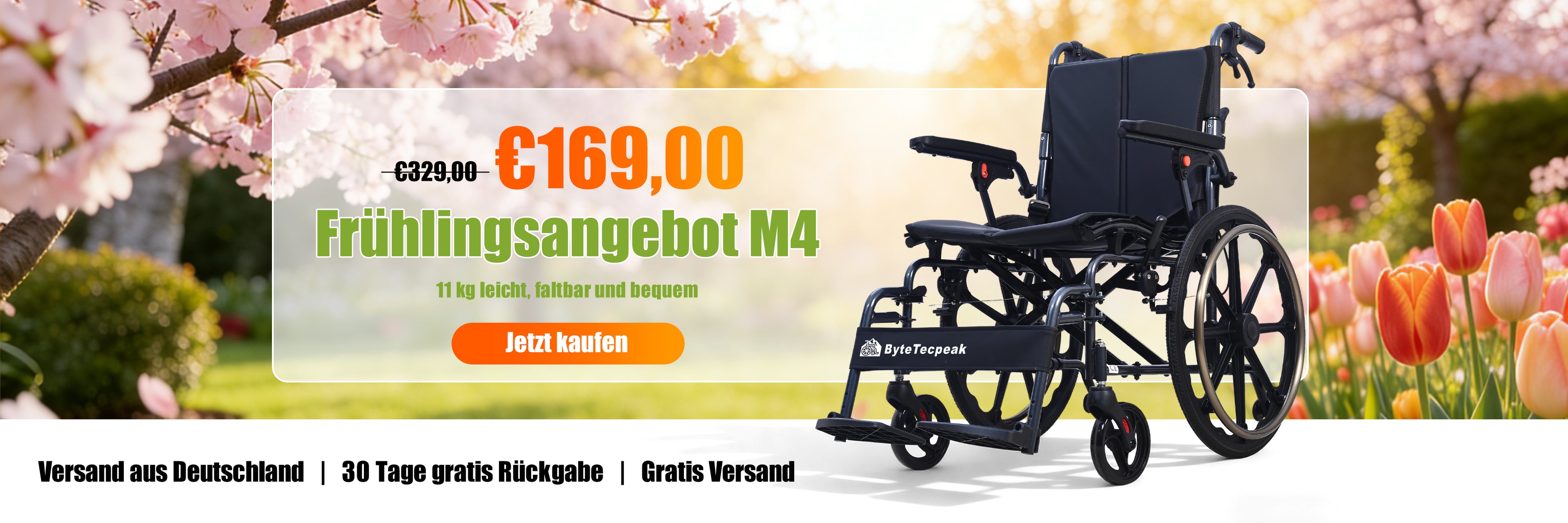ByteTecpeak M5 ultraleichter Rollstuhl 11 kg – faltbar & transportfreundlich
