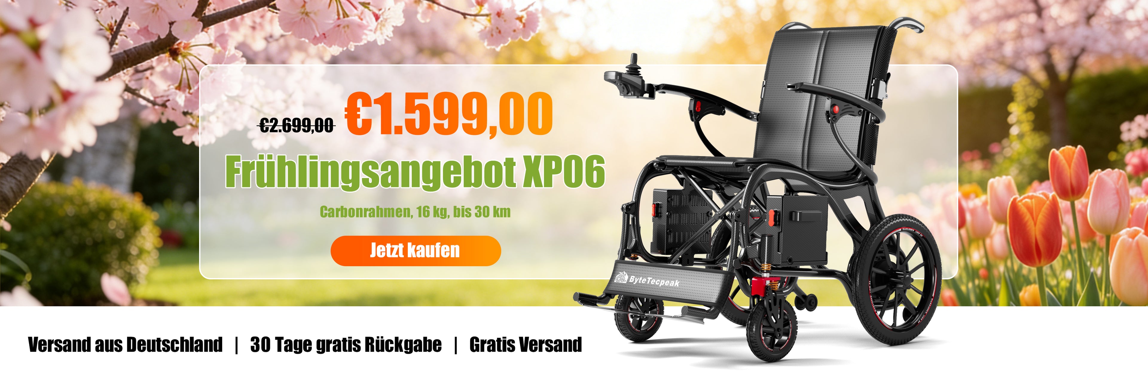 ByteTecpeak XP06 – ultraleichter Elektrorollstuhl mit Carbonfaser-Rahmenl |16 kg |30 km Reichweite