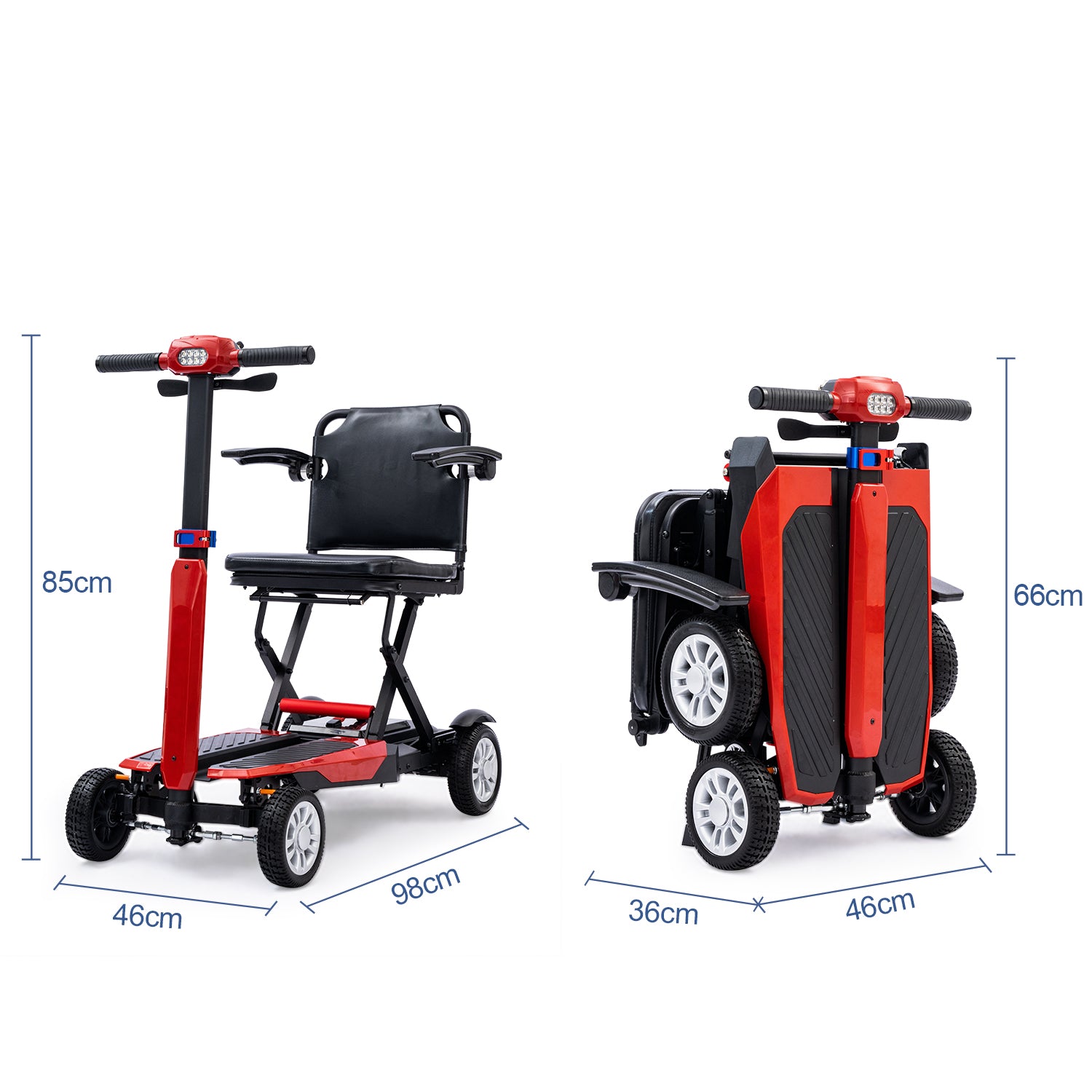 Le lève-personne électrique Z01 mesure 66 × 46 × 36 cm une fois plié, ce qui le rend facile à ranger dans un coffre ou un espace de vie restreint. Il offre un gain de place considérable et en fait le compagnon de voyage idéal.