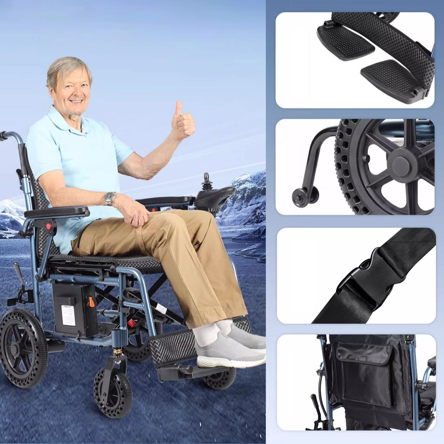 Ez az elektromos kerekesszék kiváló minőségű alumíniumötvözetből készült, könnyű és hordozható, és akár 150kg-ig terhelhető – ideális választás mindennapi használatra.