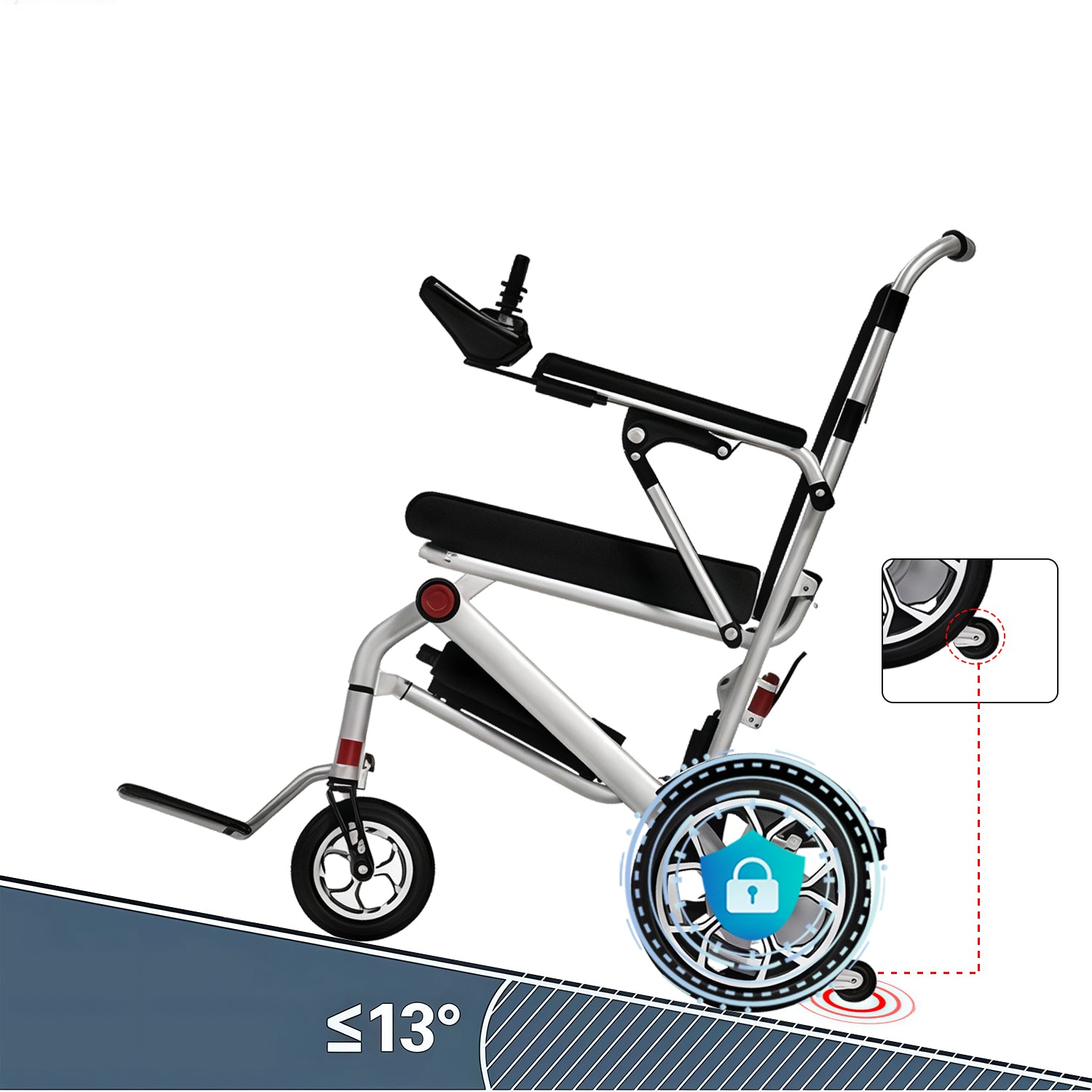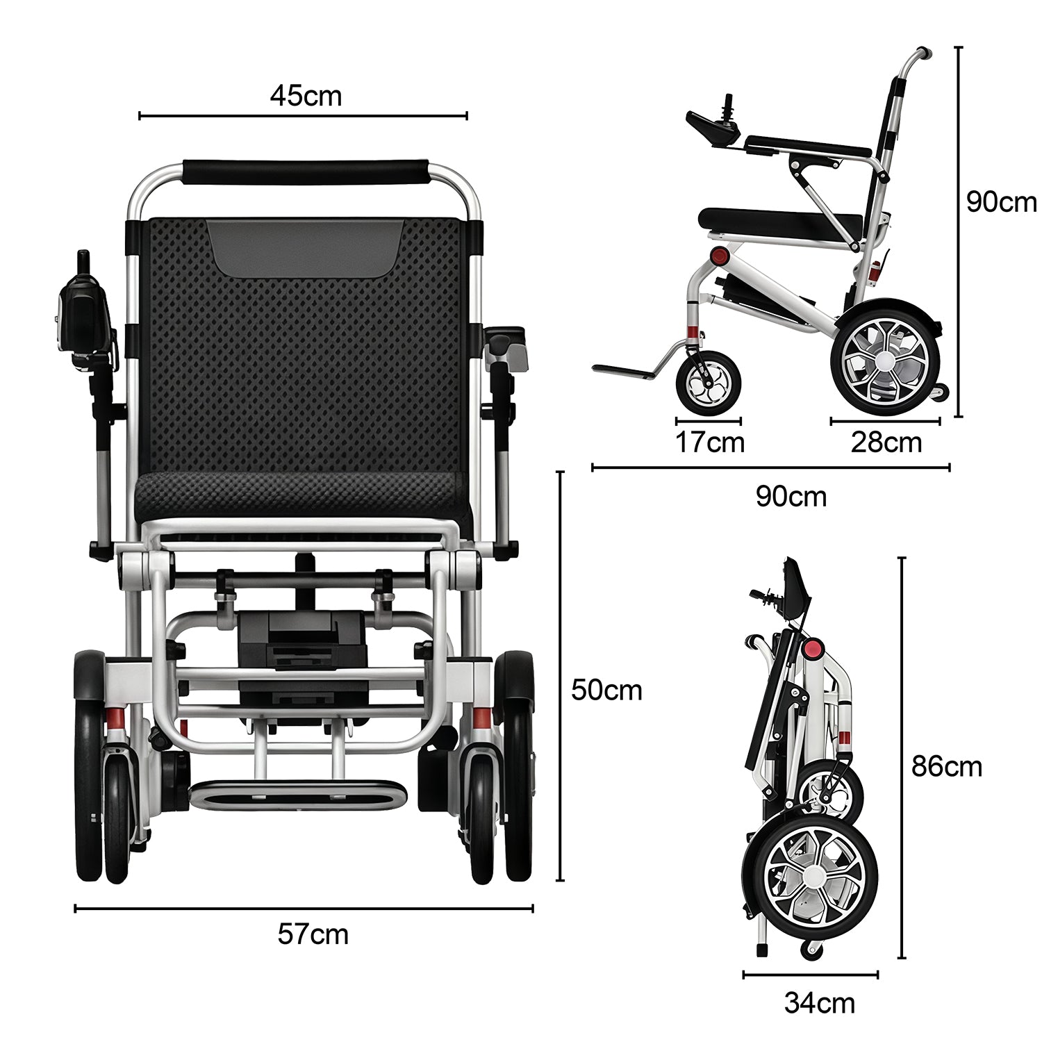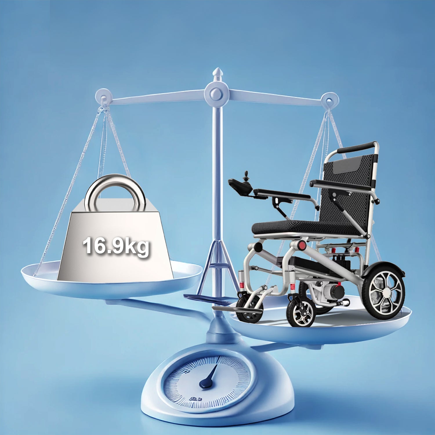 Mindössze 16,9 kg súlyával (akkumulátor nélkül) az elektromos kerekesszék kifejezetten könnyű kivitelű. A kompakt kialakítás megkönnyíti a hordozást, tárolást és az autóban vagy utazás közbeni szállítást.