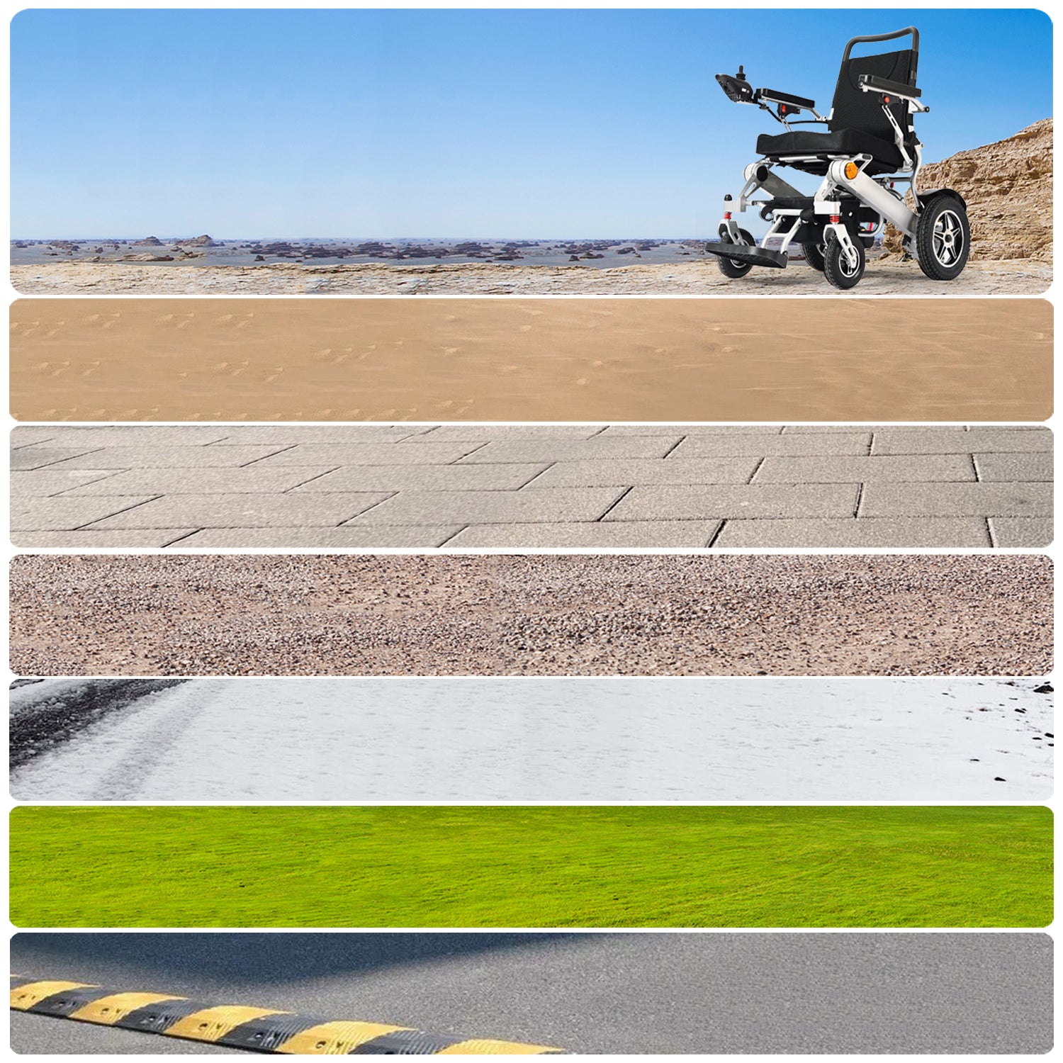 Ausgestattet mit einem kraftvollen 500W Elektromotor und einem elektromagnetischen Bremssystem, bietet der Rollstuhl eine starke Leistung und zuverlässige Sicherheit, auch bei Steigungen.