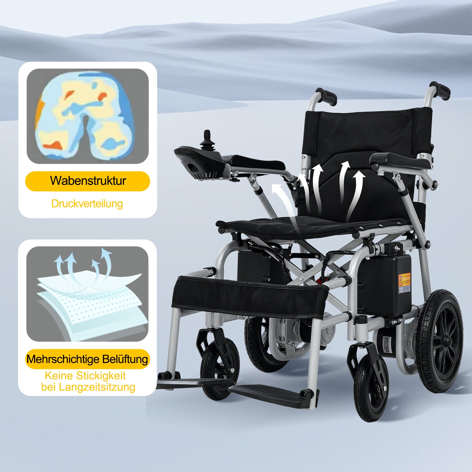 Dieser Elektrorollstuhl ist kompakt gebaut und platzsparend gestaltet, um problemlos in die meisten Autokofferräume zu passen, was den Transport im Alltag und auf Reisen erleichtert.